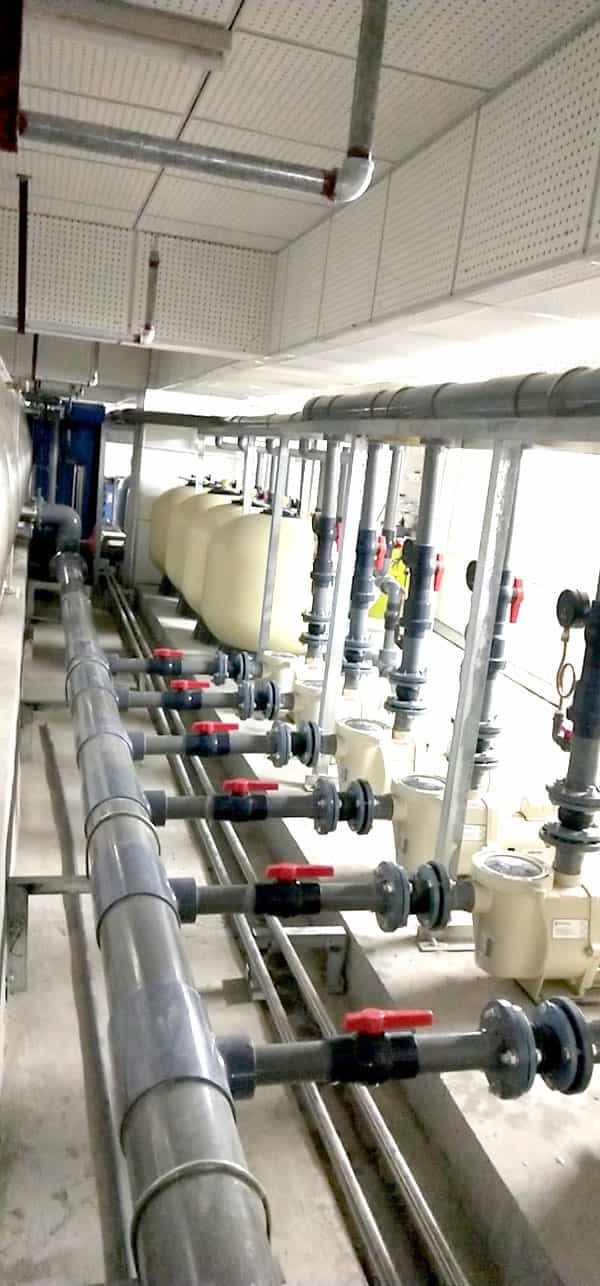 水處理設(shè)備配置由循環(huán)水泵、高效過濾器(砂缸)、自動投藥器、管道系統(tǒng)及電控系統(tǒng)組成。水處理設(shè)備選型和管道設(shè)計方案符合CJJ122-2008的要求。