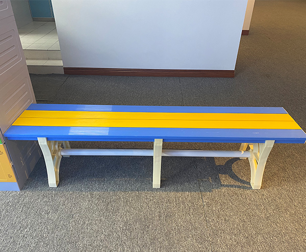 更衣凳面板PVC材質(zhì),蹬腿ABS,不使用五金件連接。更衣凳承重大于 500kg,材質(zhì)厚度 50mm。