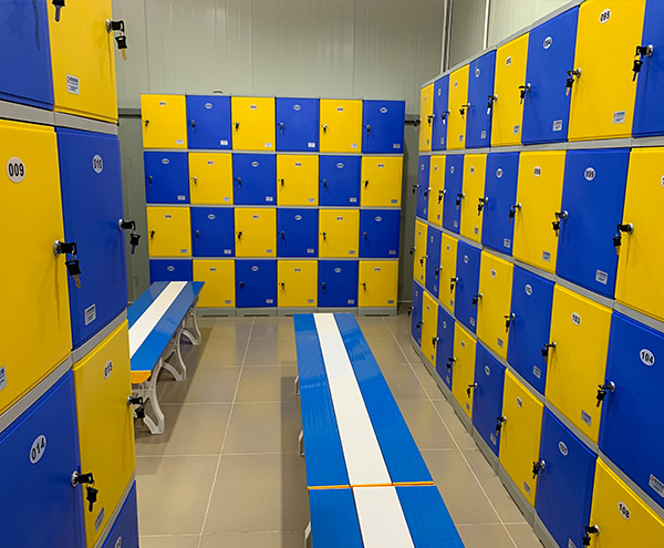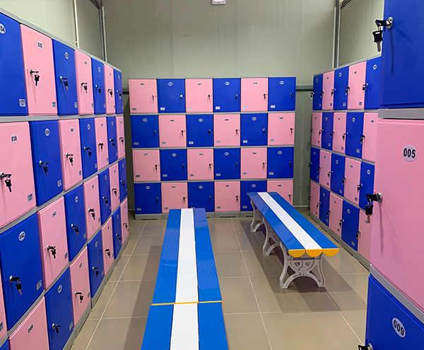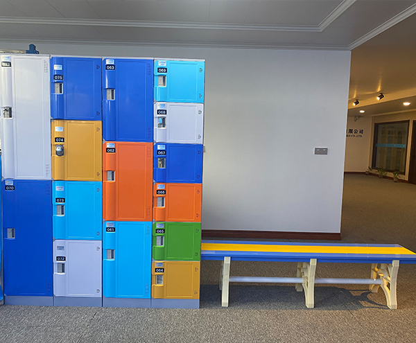 更衣凳面板PVC材質(zhì),蹬腿ABS,不使用五金件連接。更衣凳承重大于 500kg,材質(zhì)厚度 50mm。